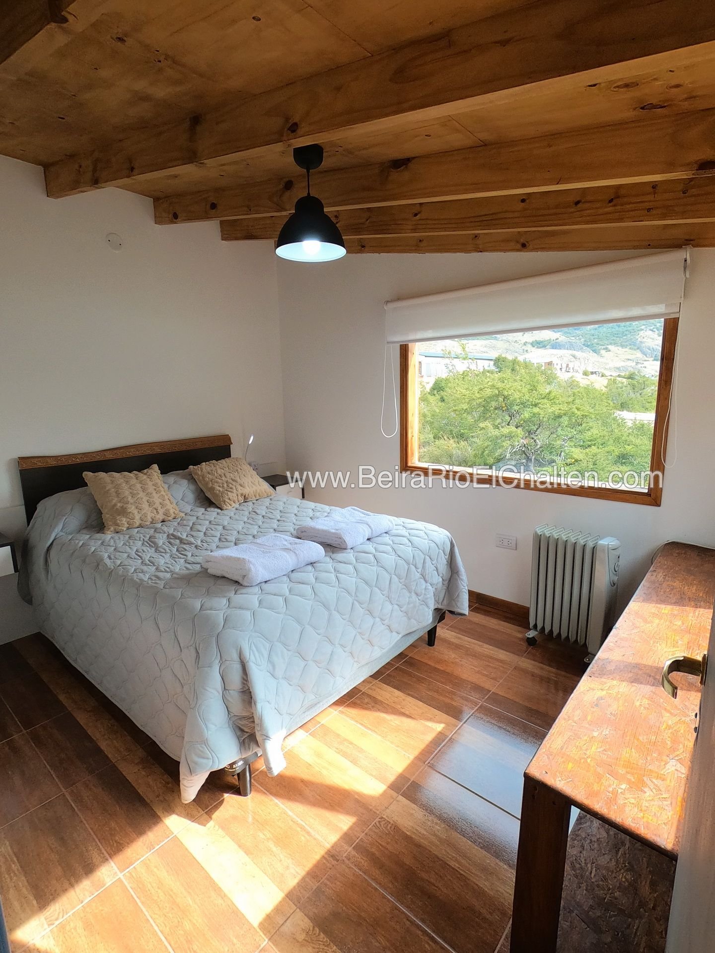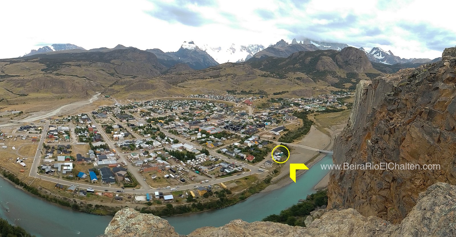 Ubicación céntrica y a pocos metros del Río de las Vueltas, con excelente vista al río y el cerro Paredón de los Cóndores